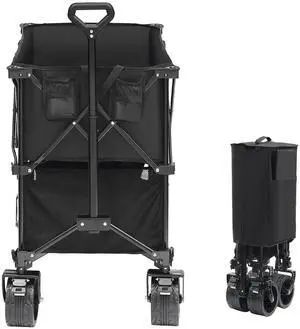 Foldable Double Decker Wagon, 400L Collapsible Wagon Cart with All-Terrain Wheels, Heavy Duty Folding Wagon Cart 350-450 lbs Weight Capacity for Camping, Shopping, Garden, 52" Extra Long Extender