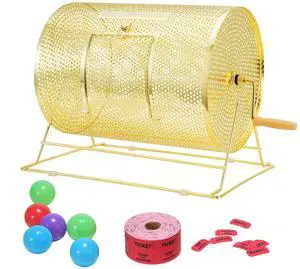 Raffle Drum, Holds 5000 Tickets or 200 Ping Pong Balls, Metal Lottery Spinning Drawing with Wooden Turning Handle,16.1 x Ø12 inch Brass Plated Raffle Ticket Spinning Cage, for Bingo Ballot Part