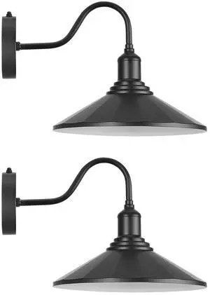 2 PKS Outdoor Barn Light 11.5 in Farmhouse Gooseneck Wall Sconce Porch Black