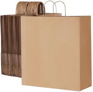 Kraft Paper Bags with Handles, 100Pcs 16 x 6 x 12 in, Large Paper Grocery Bags, Reusable & Recycled Take-Out Sacks, Plain Party Bag Bulk for Birthday, Wedding, Business, Goody, Brown
