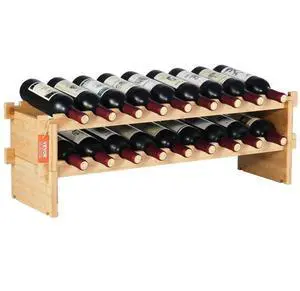 VEVOR 18 Bottle Stackable Modular Wine Rack Bamboo Wood Display Shelf 2-Tier