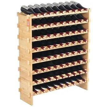 VEVOR 72 Bottle Upgrade Modular Wine Rack Bamboo Wood Display Shelf 8-Tier