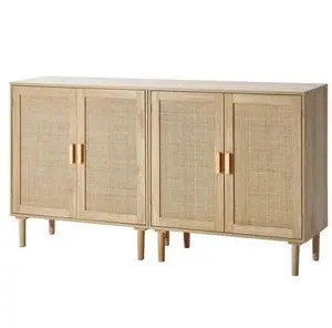 VEVOR Rattan Cabinet, Set of 2, Rattan Storage Cabinet with 4 Magnetic Doors and Adjustable Shelves, Sideboard Buffet Cabinet for Hallway, Entryway, Living Room, or Kitchen, Natural
