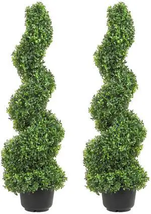 Artificial Boxwood Topiary Tree, 60 inch Tall (2 Pieces), Spiral Faux Topiary Trees, Faux Plant w/ Extra Leaves & Pot & Small Decoration, UV Rated Greenery Set for Home Decor Indoor/Outdoor