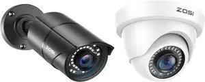 ZOSI 2MP 1080p Security Cameras 4-in-1 Hybrid TVI/CVI/AHD/CVBS Bullet Camera Indoor Outdoor (2-Pack), IP67 Weatherproof, Compatible with 960H/720P/1080P Analog DVR Systems.
