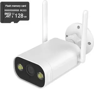 Security Camera Outdoor 2K 3MP, HD WiFi 2.4G Home Security Camera for Outside with IR & Color Night Vision, 2-Way Audio, IP66 Waterproof, Tuya/Smart Life App, Cloud & SD Card Storage (128G SD Card)