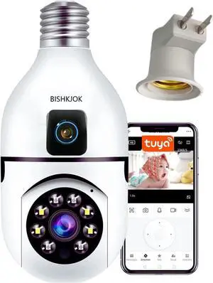 6MP Dual-Lens Light Bulb Security Camera, TUYA Indoor 360° Pan/Tilt WiFi Cam with Auto Tracking, Color Night Vision, Motion Alerts, 2-Way Audio, Pet/Baby Monitor, E27 Socket