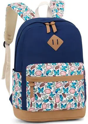 Leaper School Cute Backpack for Girls: Canvas Kawaii Bookbags for Girl 10-12 Years Old - Laptop Travel Backpacks for Teens Dark Blue