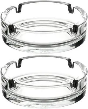 Glass Ashtrays for Cigarettes, Portable Decorative Modern Ashtray for Home Office Indoor Outdoor Patio Use, Fancy Cute Cool Ash Tray, Pack of 2 (Clear)