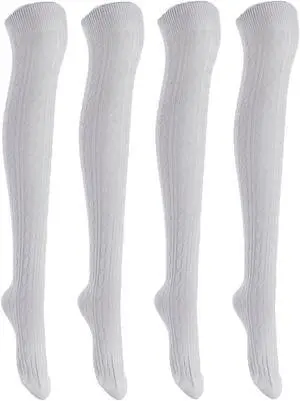 Lian LifeStyle Women's 4 Pairs Adorable, Fashionable, Super Comfortable and Ultra-Soft Thigh High Natural Socks LW1023 Size 6-9 (White)