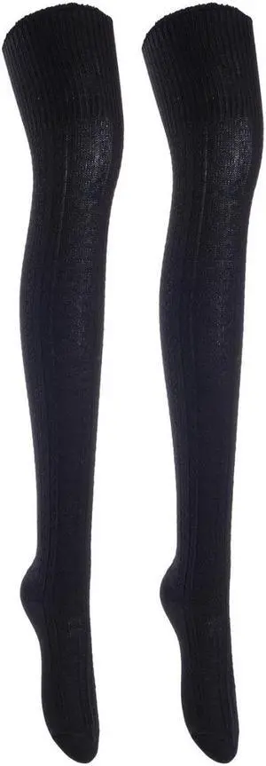 Lian LifeStyle Women's 2 Pairs Adorable, Super Comfortable, Fashionable Thigh High Cotton Socks for everyday relaxed feet LW1025 Size 6-9(Black)