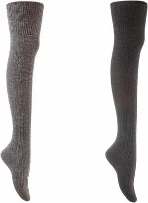Lian LifeStyle Women's 2 Pairs Adorable, Super Comfortable And Fashionable Thigh High Cotton Socks for everyday relaxed feet LW1025 Size 6-9(Grey)