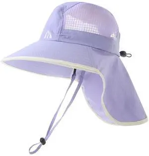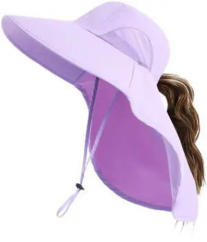 Womens Wide Brim UV Sun Protection Hats Foldable Waterproof Fish Hat Women with Neck Flap Light-Purple