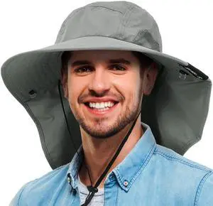 Neck Flap Fishing Safari Cap for Men, Wide Brim Sun Hat for Outdoor Hiking, Camping, Gardening