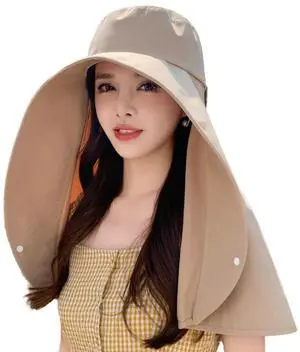 Sun Hat for Men Women with Neck Flap,Wide Brim UPF50+ Fishing Hat with Detachable Face Cover Outdoor Sun Protection Hat