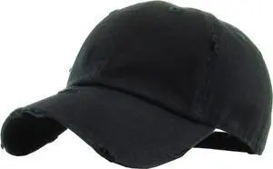 KBE-VINTAGE BLK Vintage Washed Cotton Baseball Cap, Black