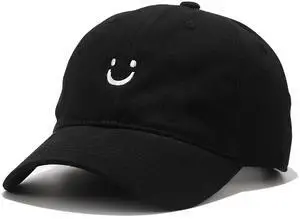 Smile Face Baseball Cap for Women Men Adjustable Low Profile Unstructured Cotton Dad Hat (US, Alpha, One Size, Black)
