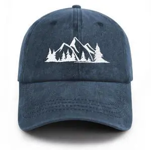 Mountain Trees Hat for Men Women, Funny Adjustable Embroidered Cotton Hiking Camping Explore Outdoor Baseball Cap(Navy Blue)