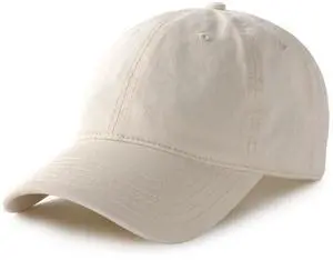 Unisex Vintage Washed Unstructured Baseball Cap Washed Cotton Adjustable Dad Hat Beige