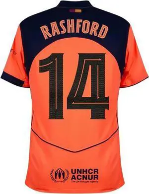 Rashford #14 Mens Soccer Jersey Fan Edition Short Sleeve Training & Casual Shirt Home, Away & Third Kit 2025/26 Orange XL
