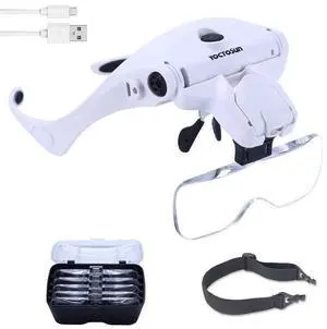 LED Head Magnifier, Rechargeable Hands Free Headband Magnifying Glasses with 2 Led, Professional Jeweler's Loupe Light Bracket and Headband are Interchangeable