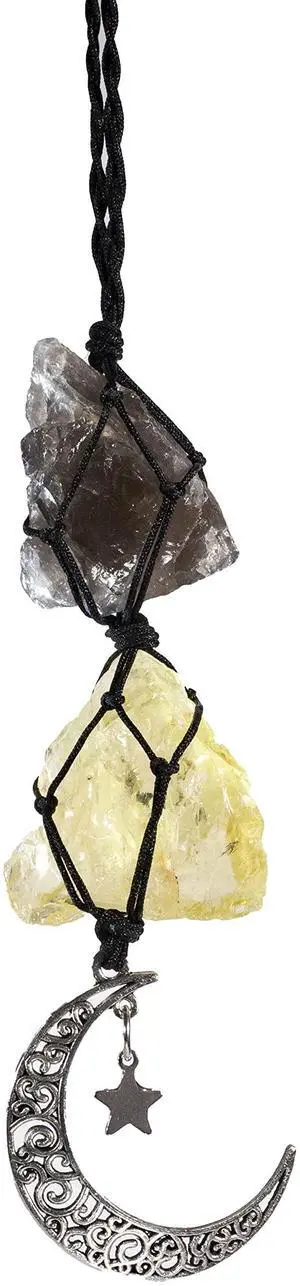 Hanging Car Charm - Smoky Quartz & Citrine - Dangling Moon, Healing Crystal Accessories, Rearview Mirror Decorations ÐGrounding, Cleansing, Protection, Joy, Abundance, Clarity, Energy