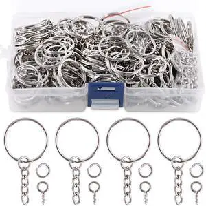 100PCS Split Key Ring Kit with Chains & Jump Rings - 1 Inch Silver Nickel Bulk Jewelry Making Supplies for DIY Keychains, Charms, Crafts