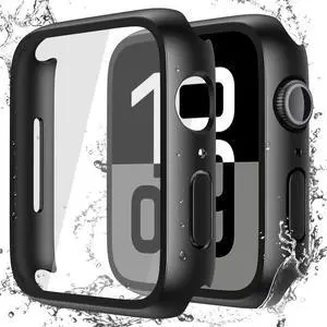 2 Pack Tempered Glass Case Compatible for Apple Watch Series 11 (2025) Series 10 46mm, Screen Protector Cover for iWatch, Black