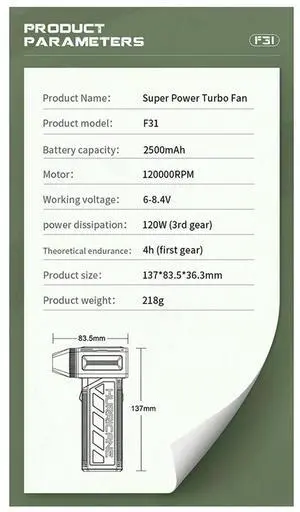 F31 120000RPM 120W Super Power Turbojet Fan Brushless Motor High Speed Fan Mini Turbojet Fan Turbo