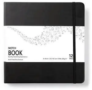 Landscape Hardcover Sketchbook-White Paper, 120 Pages, Black Cover, 8X8 Inch Size