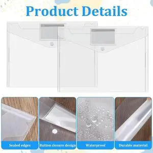 50 Pcs Plastic Envelopes File Folders With Snap Button Closure For Letter A4 Size Document Organizer In Home Office