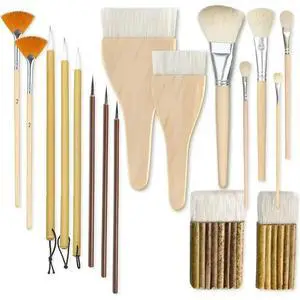 For Pottery Glaze& Painting Brush Set(17-Piece), Wooden Brushes For Clay Art For Pottery Glazing, Watercolor Painti