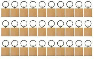 30Pcs Blank Square -Shaped Wooden Keychain DIY Wood Keychains Key Tags DIY Gifts