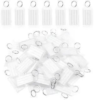 Plastic Key Tags 100Pcs White With els, Key Fobs Featuring Split Ring And Flap el Window For Keys, Pets, Luggage