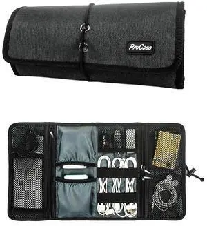 ProCase Electronic Organizer Cord Pouch, Travel Cable Charger Phone Accessories Bag Organizer Roll up Tech Carrying Case for USB Cables SD Memory Cards Earphone Flash Hard Drive Black