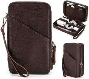 CataPurus Electronic Organizer Zipper Bag Tech Kit, Top Grain Leather Handmade, Portable Compact Travel Apple Accessories Storage Pouch Fits Phone, USB Cables, Power Banks, Chargers, Hard Drive