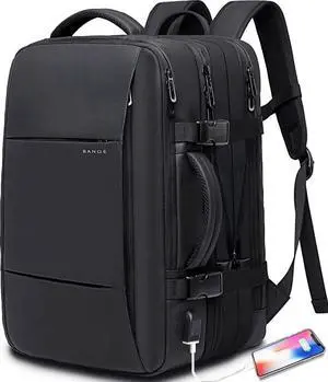BANGE Travel Backpack with Vacuum Pocket and TSA lock version can hold 15.6 inch Laptop suitable Overnight Flight Approved Anti-theft Bag