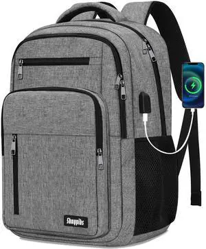 Skaypibs Backpack for Women Men, School Backpack for Boys Girls Teens, 17.3 Inch Laptop Backpack with USB Port, College Middle High School Bookbag, Water Resistent Business Mochila para hombre, Grey
