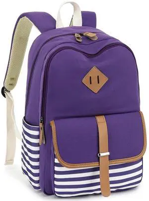 Leaper Girls Stripe Canvas Backpack Large Laptop Bag Travel Shoulder Bag Daypack Blue