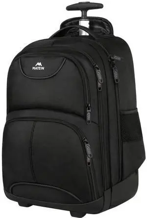 Rolling Backpack, 17 inch Water Resistant Wheeled Laptop Backpack, Carry on Luggage Business Bag, Overnight College Computer Bag Trolley Suitcase for Men Women Adults to Travel, Black