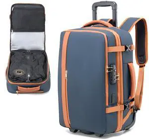 SWICKY RICOOI Backpack with wheels,rolling backpack carry on luggage with Anti-Theft,wheeled backpack for travel,Water-Resistant,Business and Commuting