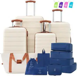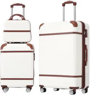 Hardshell Luggage Sets 3 Pieces 20"+24" Luggages and Cosmetic Case Spinner Suitcase with TSA Lock Lightweight,White