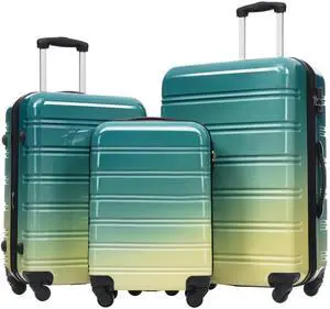 Hardshell Luggage Sets 3 Piece Gradient Color Expandable Suitcase with Spinner Wheels and TSA Lock Lightweight 20" 24" 28" Available,Green+Yellow