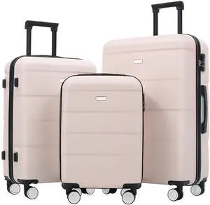 Hardshell Luggage Sets 3 Pcs Spinner Suitcase with TSA Lock Lightweight 20''24''28'' Champagne