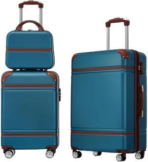 Hardshell Luggage Sets 4 Pieces 20"+24"+28" Luggages and Cosmetic Case Spinner Suitcase with TSA Lock Lightweight