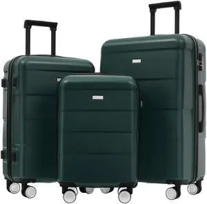 Hardshell Luggage Sets 3 Pieces 20"+28" Luggages and Cosmetic Case Spinner Suitcase with TSA Lock Lightweight,Green