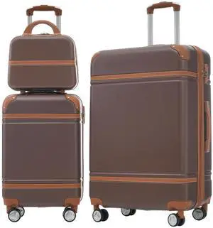 Hardshell Luggage Sets 3 Pieces 20"+24" Luggages and Cosmetic Case Spinner Suitcase with TSA Lock Lightweight,Brown