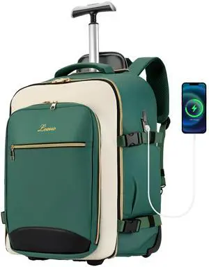 LOEUO Carry On Backpack with Wheels for Adults, Airline Approved Rolling Backpack for Women, Foldable Bottom Travel Laptop Backpack (Deep Green)