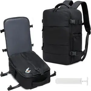 FOXTOUR Travel Backpack w/Vacuum Compression (w/Pump) - Carry-On, 18x14x8 In, Multi-Comp Laptop Bag ()