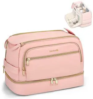 Hanke Travel Toiletry Bag, Lightweight Wide-open Makeup Bag, Dual-Layer Travel Bag for Toiletries Water-Resistant Cosmetic Bags Large Toiletry Bags for Women & Men, Travel Essentials, Pink